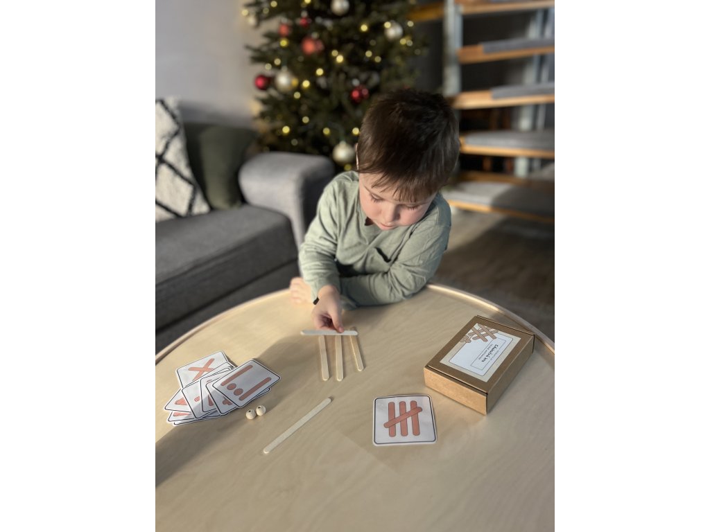 📦 5 drevených paličiek, ktoré sú základom pre skladanie obrazcov.