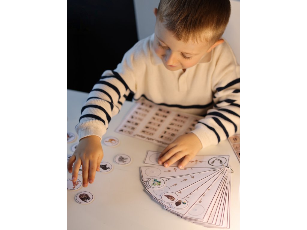 3️⃣ Správne zvieratko nalepí na suchý zips na kartičke.