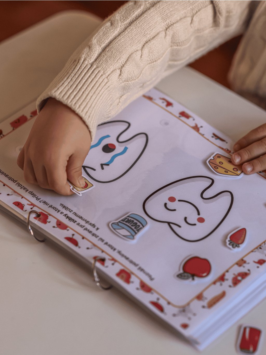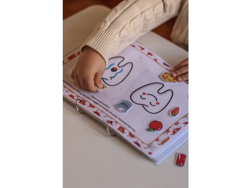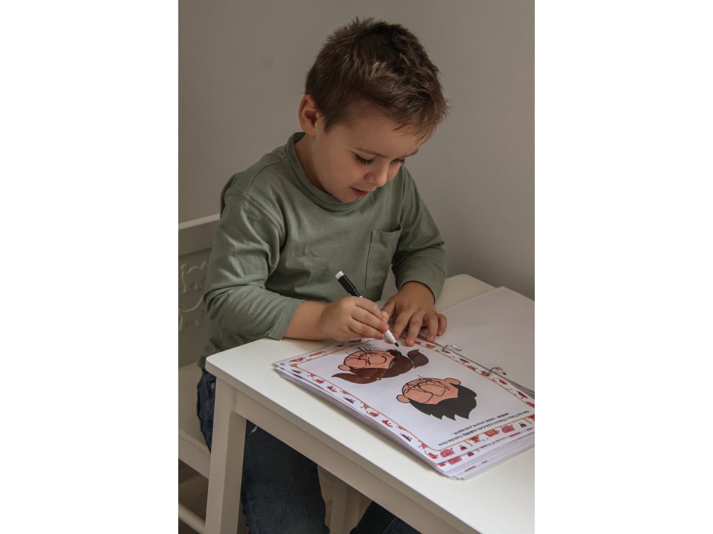 Zošit je navrhnutý tak, aby deti učil hravou a názornou formou. Vďaka suchým zipsom a zotierateľnej fixke si môžu úlohy skúšať opakovane bez obmedzení. 🔁