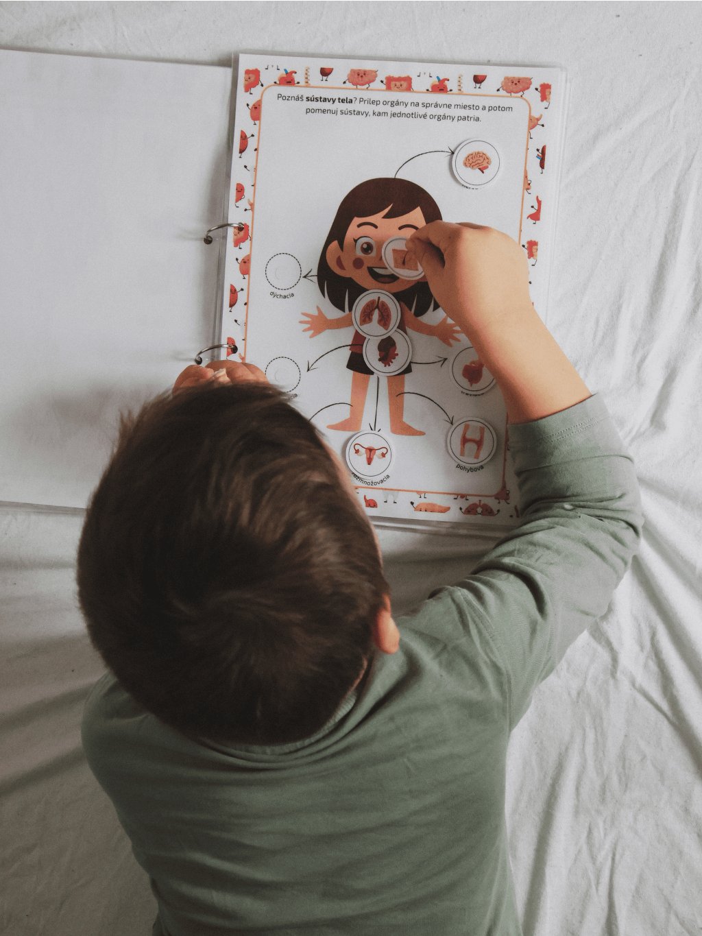 Objavovanie ľudského tela je pre deti nesmierne zaujímavé! 🧠✨ Tento pracovný zošit na suchý zips prináša 18 strán plných pútavých úloh, ktoré deťom hravou formou priblížia, ako funguje naše telo. 👧👦