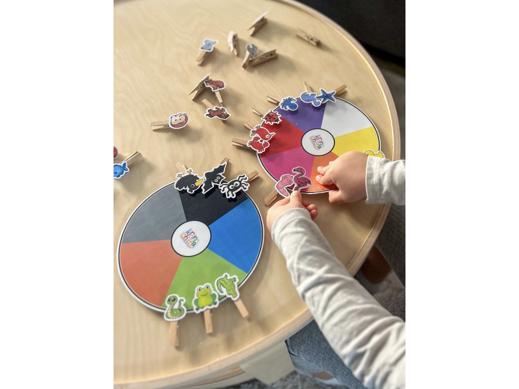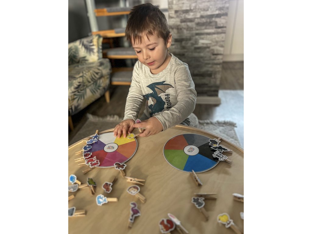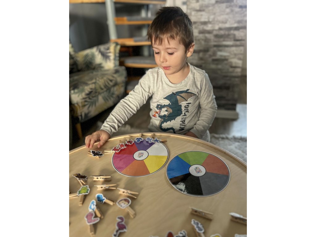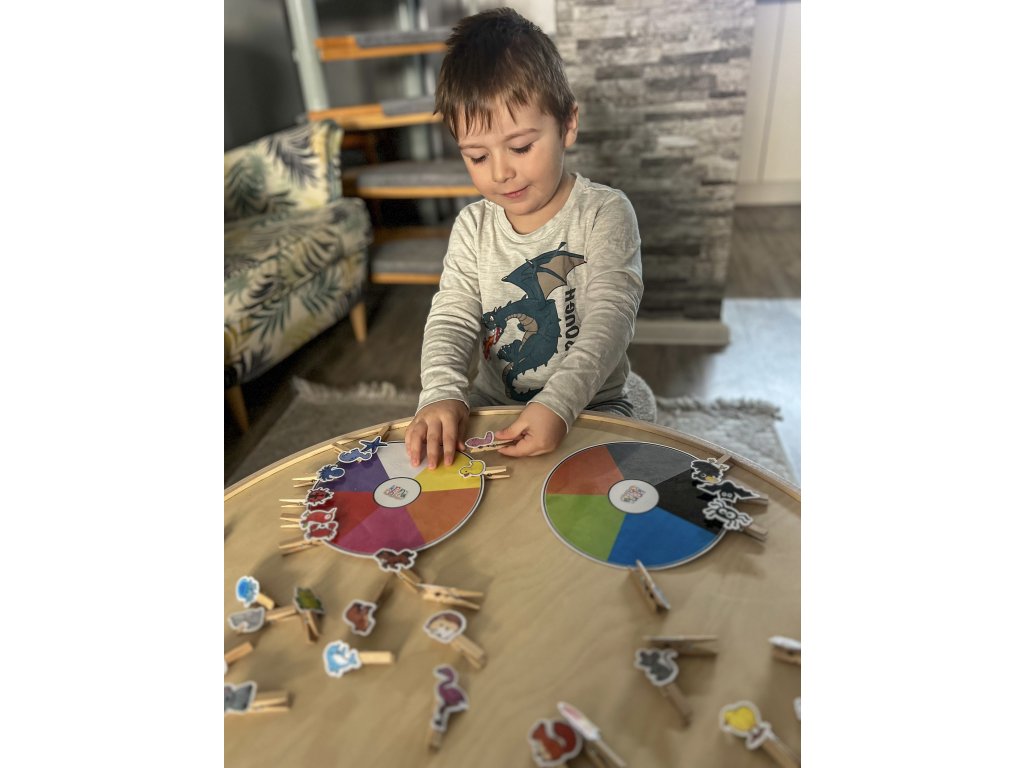 Objavujte svet farieb hravou formou! Farbičkový kolotoč je skvelá pomôcka, ktorá deti učí rozpoznávať farby, ich názvy a zároveň rozvíja jemnú motoriku. Táto interaktívna aktivitka je ideálna pre deti, ktoré milujú zábavné a kreatívne učenie. 🌈